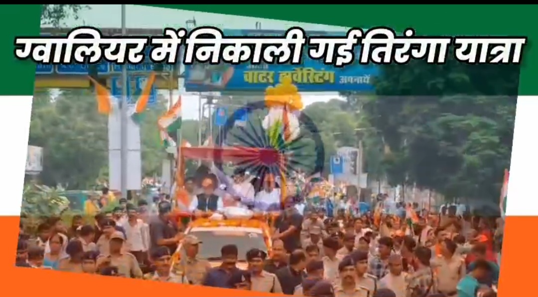एंकर -: स्वतंत्रता दिवस आने में अभी चार दिवस शेष हैं लेकिन देश अपने आजादी के महोत्सव में झूम रहा है और यही वजह है कि आज ग्वालियर में मध्य प्रदेश के मुख्यमंत्री डॉ मोहन यादव के नेतृत्व में हजारों की संख्या में शहर वासियों ने तिरंगे को सलाम किया तिरंगा यात्रा निकाली और भारत मां को नमन किया।