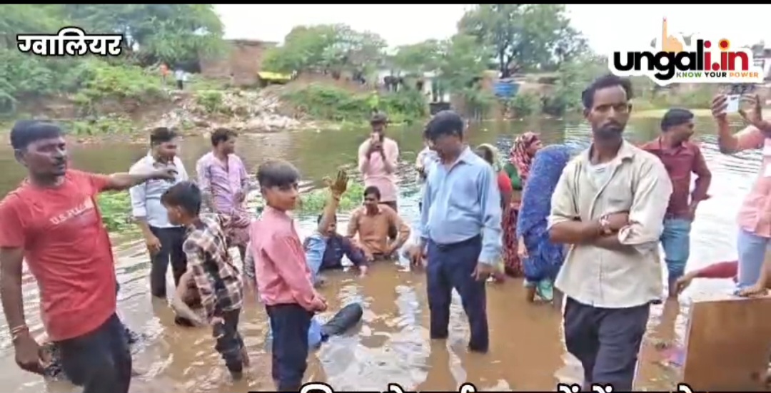 एंकर-: ग्वालियर के कई इलाकों में बाढ़ के हालात बने हुए है। शहरी क्षेत्र के दो डेम रमुआ, वीरपुरबांध फुल होने पर दोनों बांधों के गेट खोले गए है। जैसे ही वीरपुर बांध के गेट खोले गए वैसे ही इलाके में विवाद उत्पन्न हो गया। क्योंकि वीरपुर बांध के आसपास डूब क्षेत्र में बसे लोगों का आरोप है कि बांध के गेट खोलने से पहले उन्हें किसी भी तरह की सूचना नहीं दी गई है। ऐसे में अगर जल स्तर बढ़ता है तो उनकी जान और माल को नुकसान हो सकता है विरोध स्वरूप कुछ स्थानीय लोग बांध से निकलने वाले पानी में जल सत्याग्रह करने बैठ गए थे। उनकी मांग है कि प्रशासन बांध के आसपास कुछ गार्डन और रिसॉर्ट बन गए हैं और उनमे पानी भर गया है ऐसे में रसूखदार लोगों को फायदा पहुंचाने के लिए डैम के गेट खोल दिए गए हैं। आपको बता दे, कि वीरपुर बांध के 36 साल बाद गेट खोले गए हैं और डूब क्षेत्र के कई मकान भी बांध के पानी की चपेट में आ गए हैं। एतिहात के तौर पर वीरपुर बांध क्षेत्र में पुलिस व्यवस्था कड़ी कर दी गई और बाकायदा घूमने आने वाले या वीरपुर पुल से गुजर रहे लोगों को बांध के पानी से दूर रहने की हिदायत दी जा रही है। गणपति विसर्जन तक की परमिशन बांध के आसपास नहीं दी गई है।