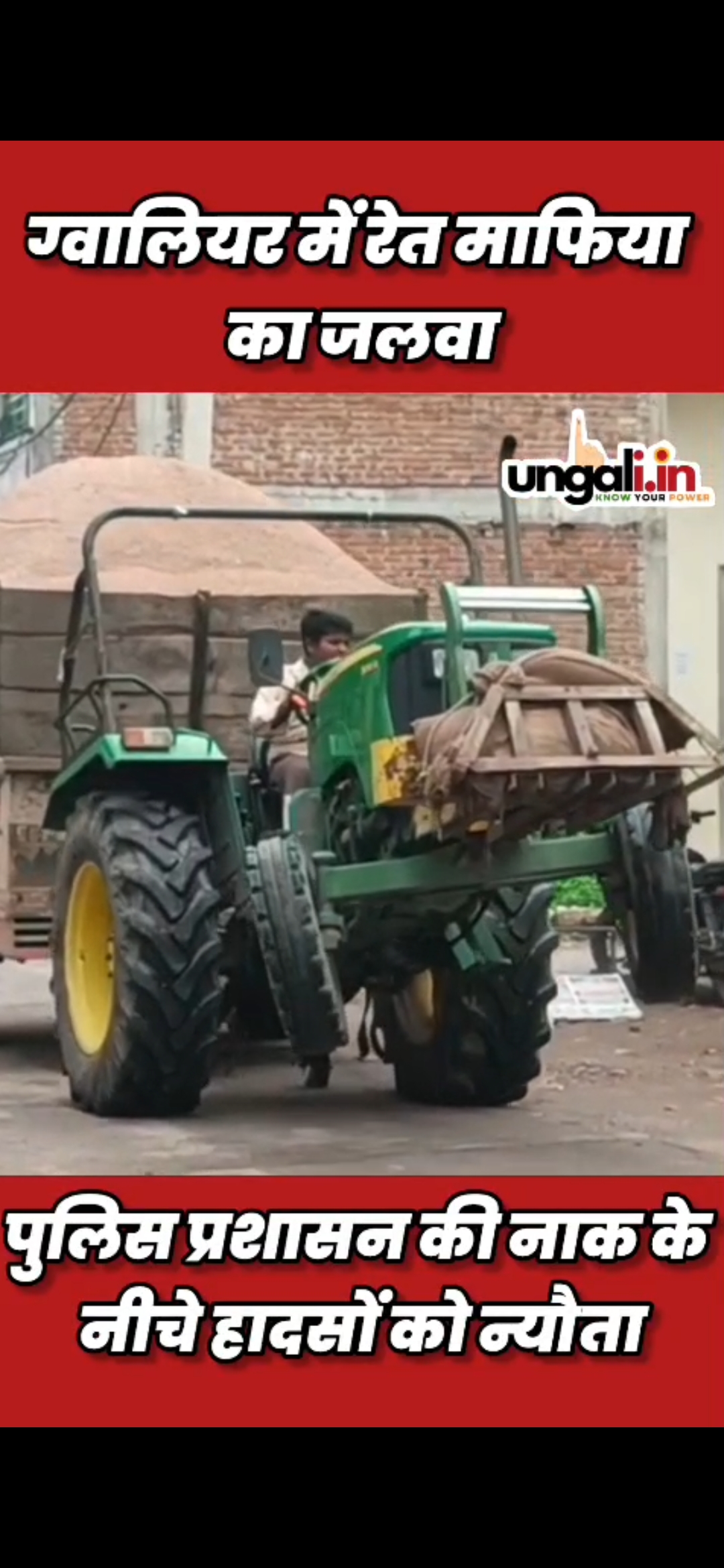 ग्वालियर में माइनिंग माफिया और खनिज विभाग की मिलीभगत के चलते लोगों की जान खतरे में है। यह हम नहीं कह रहे यह तस्वीरें बयान करती हैं की अवैध रेत माफिया रिहाइशी इलाक़ों और गली मोहल्लों में किस तरह से स्टंट बाजी करते नजर आ रहे हैं। और यह सब हो रहा है पुलिस प्रशासन की नाक के ठीक नीचे खास बात ये है कि अवैध रेत से भरे ट्रैक्टर ट्रॉली को नाबालिग चलाते नजर आ रहे हैं जिससे किसी की भी जान जाने की आशंका लगातार बनी हुई है लेकिन पुलिस प्रशासन और खनिज विभाग की सरपरस्ती में लगातार ये अवैध धंधा जारी है। सवाल उठता है कि यह अवैध रेत से भरे हुए बिना नंबर के ट्रैक्टर ट्रॉली आखिर कहाँ से आ रहे हैं। किसकी सरपरस्ती में यह रेत माफिया बेखौफ अपने अवैध धंधे को अंजाम दे रहे हैं। ऐसी तस्वीरें आपके शहर के अधिकतर इलाकों में मिल जाएगी जहां सुबह स्कूल जाते बच्चों को खतरे में डालते ट्रैक्टर ट्राली चालकों को ना तो पुलिस का डर है और ना ही आम जनता की जान की चिंता। प्रशासनिक अधिकारियों और पुलिस की मिली भगत से चलने वाले इस करोड़ के अवैध कारोबार का खुलासा जल्द होगा लेकिन उससे पहले देखी यह जानलेवा स्टंट और बेखौफ रेत माफिया।