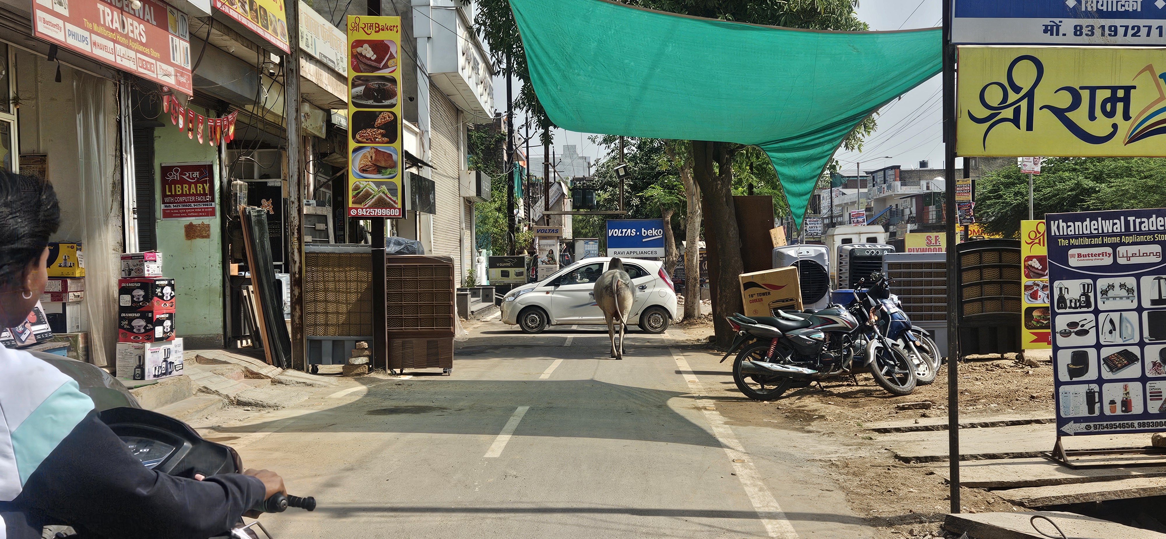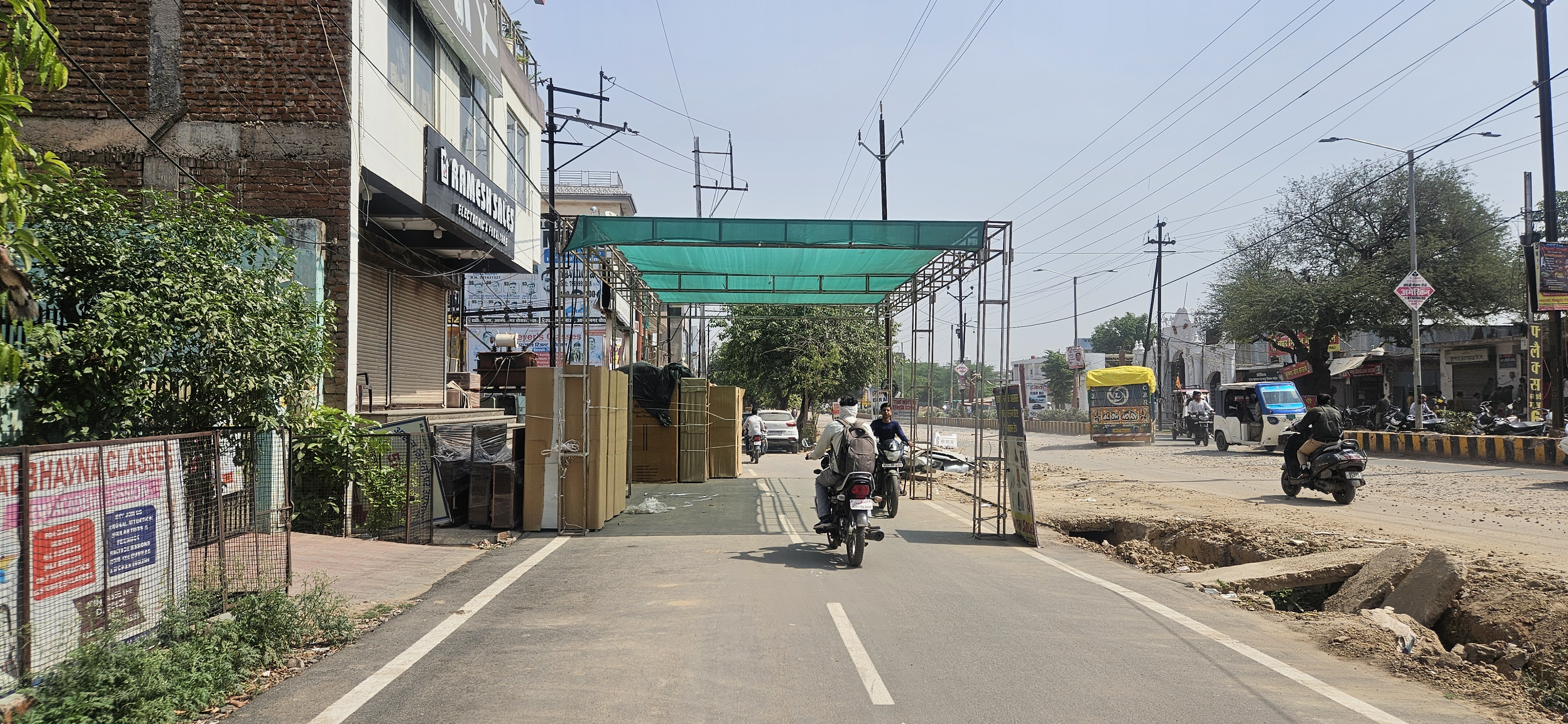 बड़े बड़े शोरूमों की दुकान दारी भी सड़क पर नजर आ रही है। दरअसल सरकारी माल और जगह को बाप का माल समझने वालों की यहाँ कोई कमी नहीं है।