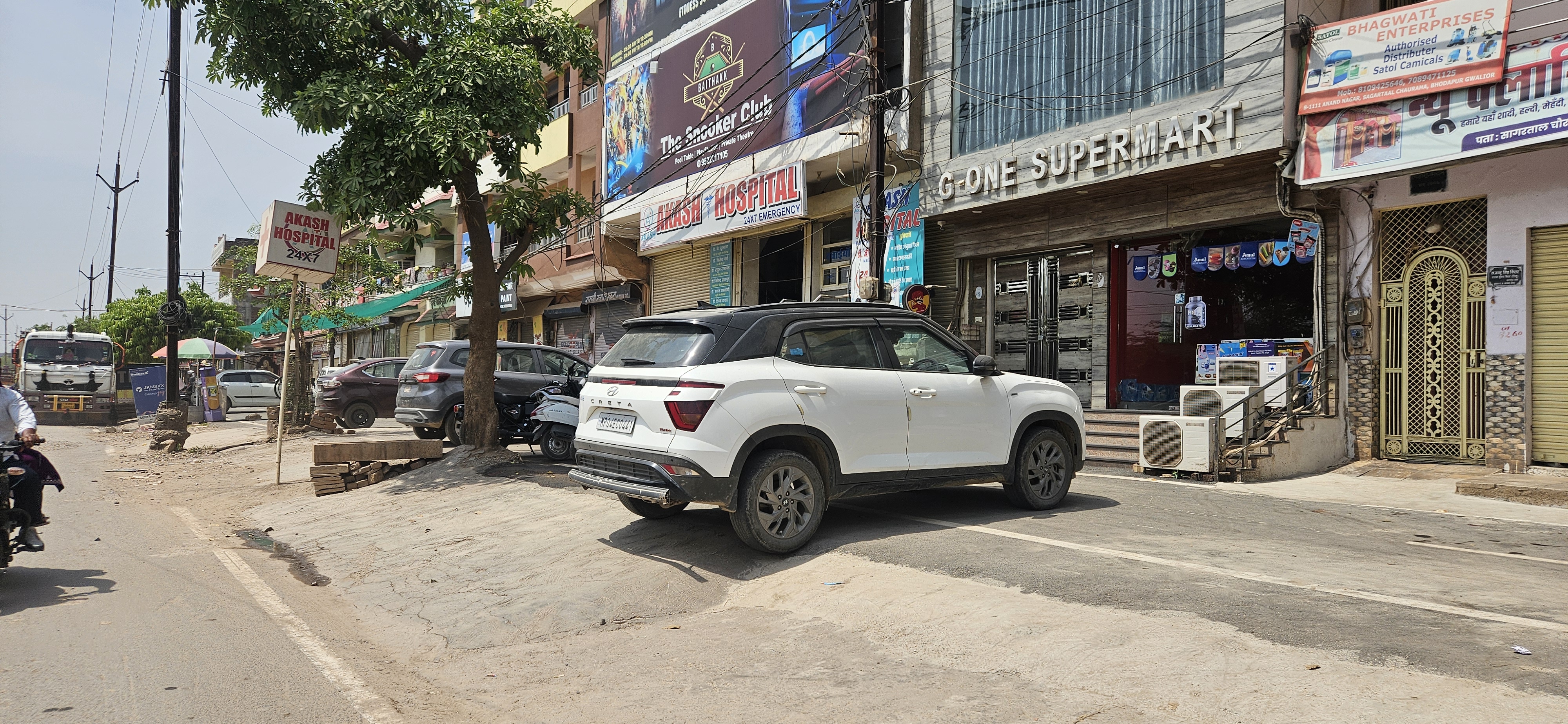 ग्वालियर में आम नागरिकों की सुविधा के लिए सीवर लाइन का कार्य चल रहा है। एक तरफ की सड़क जहाँ सीवर लाइन बिछाई जानी हैं वहाँ वैकल्पिक मार्ग के तौर पर लोगों को सुविधा प्रदान करने हेतु सर्विस रोड का डामरी करण कर उसे आवाजाही के लिए खोल दिया है कि लोग आसानी से निकल जाएँ। लेकिन शासकीय सर्विस रोड को बाप का माल समझने वालों ने इस पर अपना कब्जा जमा लिया है। यहाँ आप देखेंगे कि इस वैकल्पिक सड़क पर किस तरह से वाहन लगाए गए हैं।