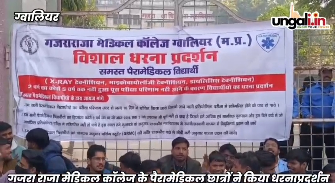 सालों से पैरामैडिकल के अटके रिजल्ट को घोषित करने लामंबद हुए स्टूडेंट्स गजराराजा मेडिकल कॉलेज के गेट पर धरना प्रदर्शन_कांग्रेस के मितेंद्र दर्शन सिंह ने भी खोला मोर्चा एंकर-ग्वालियर जबलपुर की मेडिकल काउंसिल द्वारा पैरामेडिकल के छात्रों के रिजल्ट घोषित नहीं करने के अल्टीमेटम के बाद सोमवार को यह छात्र धरने पर बैठ गए. गजरा…